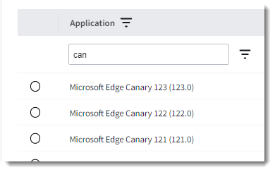 6. If you need to filter the list by certain values in a column, use the field just below the column name to provide a full or partial string for the value (or click the icon next to this field to set up a more refined filter). In the following example, the Application column is filtered by the string “can”.
