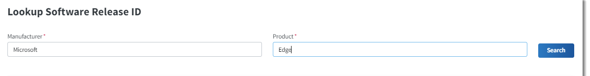 3. Click the Find or Change button beneath the field. (The Find button is displayed if no value is currently assigned to the field; the Change button is displayed if an ID is currently assigned.) The Lookup Software Release ID slideout is opened. (If a software release ID is currently assigned to the bucket, this ID is displayed at the top of the slideout.)